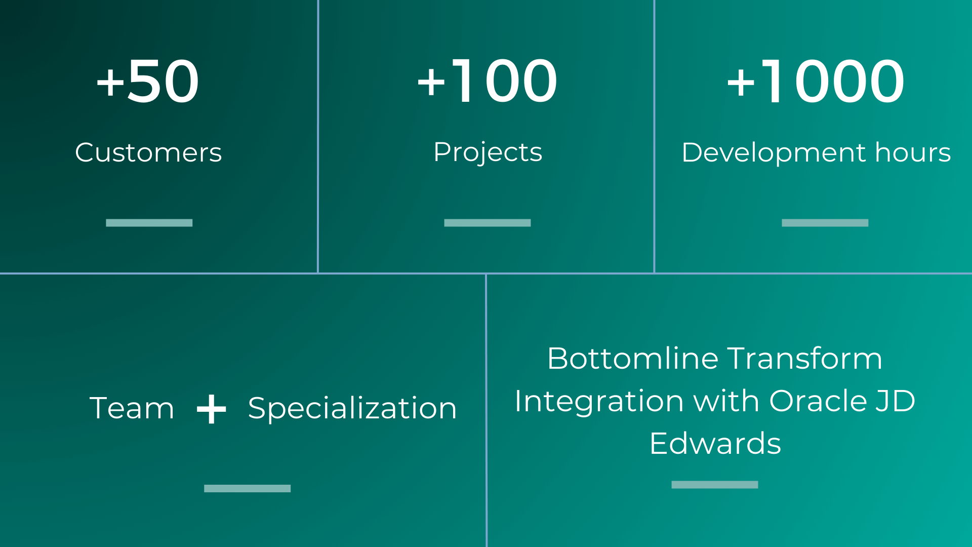Bottomline Transform’s specific ERP integrations include SAP, Oracle JD Edwards, and Microsoft Dynamics® Suite, enabling full automation of financial processes (AP,etc.).